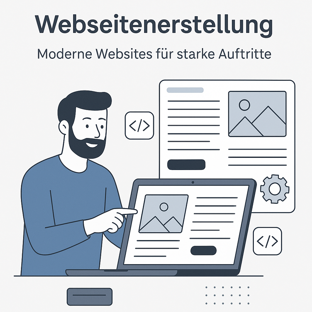 Eine gute Website überzeugt auf den ersten Blick. Ich entwickle individuelle, mobil-optimierte Websites, die zu Ihrem Unternehmen passen – klar, schnell, benutzerfreundlich. Ob Onepager, Unternehmensseite oder Online-Portfolio – Sie erhalten eine Website, die begeistert und funktioniert.